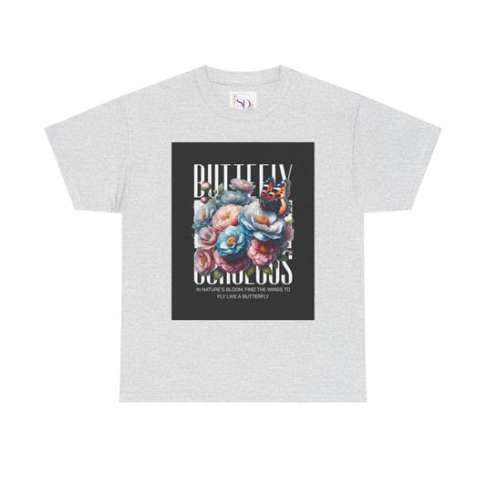 Butterfly Blooms Heavy Cotton Tee - Floral Graphic Shirt, Unisex Gift for Nature Lovers, Birthday...