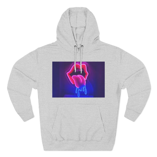 Vibrant Neon Lips Hoodie, Funky Graphic Fleece Pullover, Edgy Streetwear, Cozy Casual Style, Perf...