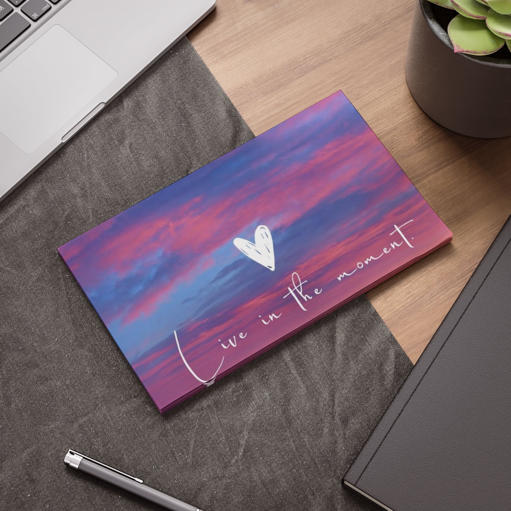 Brighten up your workspace with these vibrant Post-it® Note Pads. Infused with delightful colors and uplifting messages, these note pads are perfect for capturing your thoughts and ideas throughout the day. Ideal for students, professionals, or anyone who loves organization, they add a touch of joy to every task. Great for holidays, back-to-school, or as thoughtful gifts for loved ones, these pads inspire creativity and positivity. Keep track of to-do lists or leave cheerful reminders for friends and family—these note pads are your perfect companion for everyday life and special occasions. Product features - Vibrant colors that pop with your wildest designs. - Each pad includes 50 sheets for ample writing space. - One printed side with a beautiful design, perfect for inspiration. - Made from high-quality 75.2 gsm white uncoated paper. - Branded Post-it® adhesive ensures your notes stick wherever you need them. Care instructions