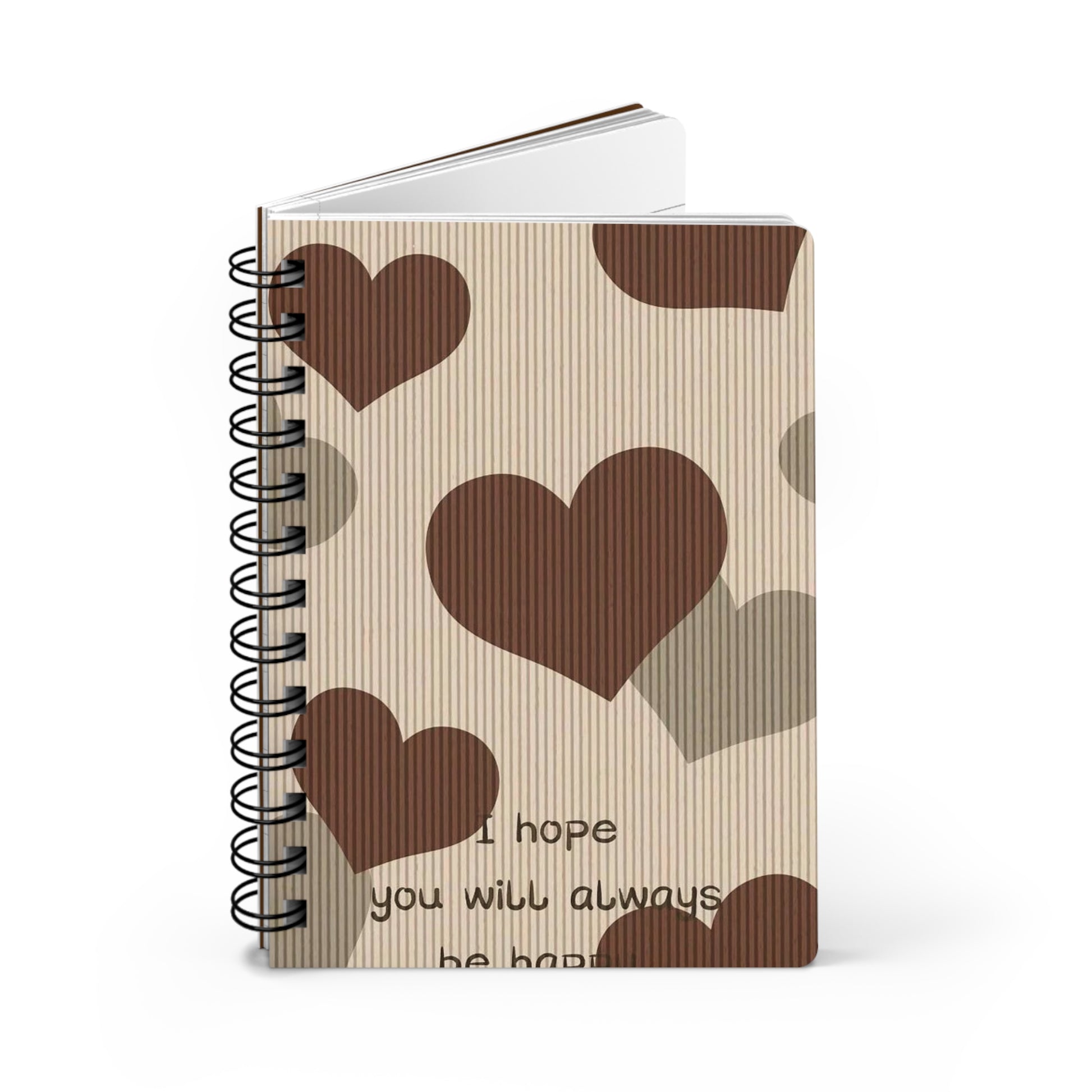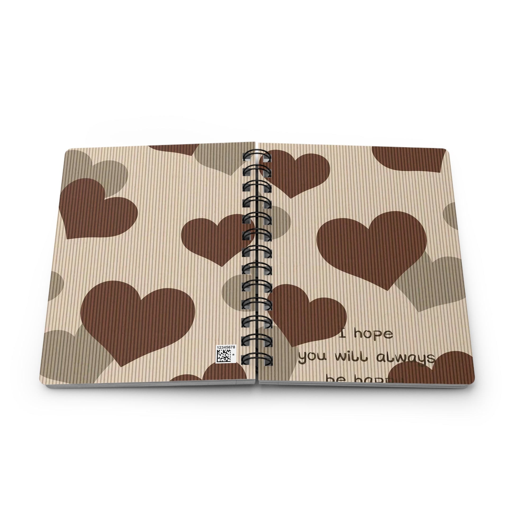 Introducing our Spiral Bound Journal – the perfect canvas for your thoughts, dreams, and creative expressions. This journal captures a fun and cozy vibe with its playful heart design, inviting you to jot down your ideas or sketch whenever inspiration strikes. Ideal for students, writers, or anyone who loves to keep memories, it seamlessly fits into both casual and professional settings. Perfect for gifting on occasions like Valentine's Day, birthdays, or even back-to-school. Embrace your creativity and make every page count! Product features - Metal spiral binding allows for easily removable pages - Vibrant colors printed with the latest techniques for crisp designs - Glossy laminated cover adds smoothness and durability - 90gsm lined paper ideal for writing and note-taking - 150 lined pages (75 sheets) for ample space to fill with ideas Care instructions - Use a soft, clean and dry cloth to gently brush any dust or dirt off from the center of book outwards.