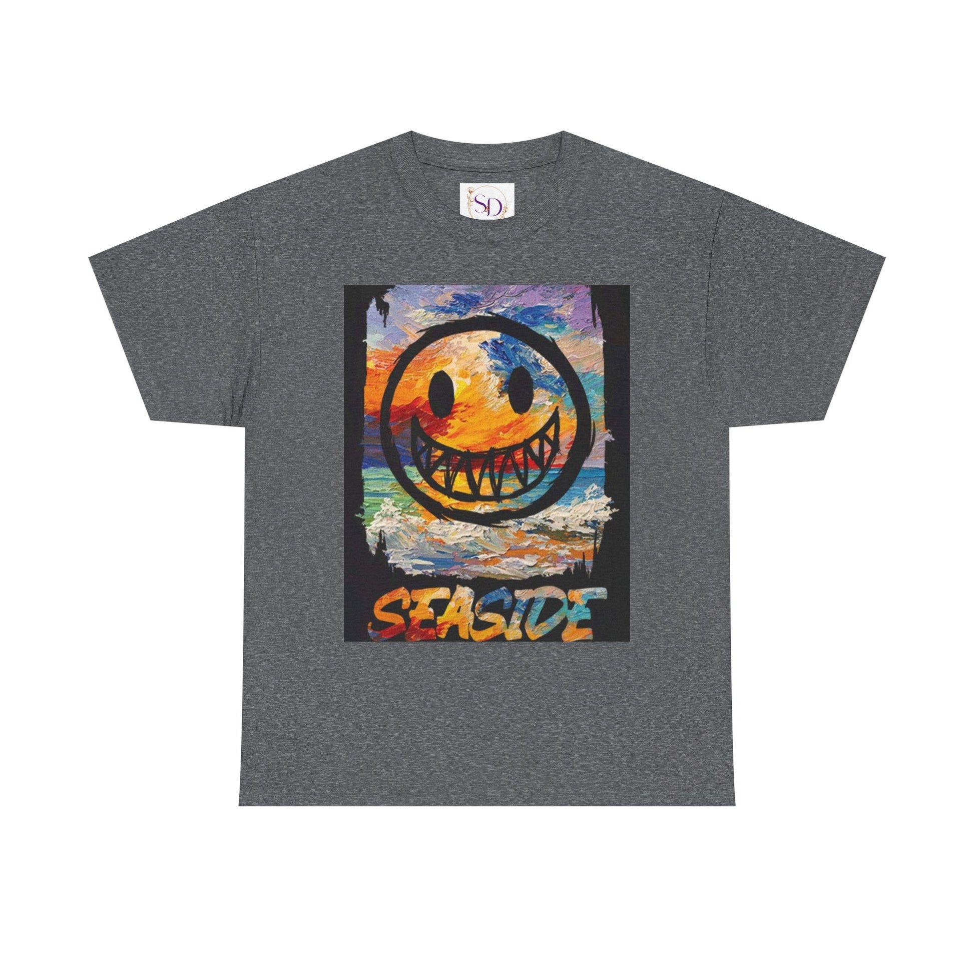 Introducing our Unisex Heavy Cotton Tee, designed to bring a vibrant splash of color to your wardrobe. With its eye-catching smiley face graphic set against a stunning seaside backdrop, this tee radiates joy and positivity. Ideal for casual outings, beach days, or simply lounging at home, it offers a relaxed yet stylish vibe for any occasion. Perfect for anyone looking to express their playful side, this comfortable tee is a great gift for friends and family, especially during holidays like summer celebrations or birthdays. Embrace the good vibes and add a cheerful touch to your attire any day of the year! Product features - Shoulder tape to prevent stretching - Seamless design reduces waste - Ribbed knit collar retains shape - Heavy cotton fabric for durability - Made with ethical US cotton Care instructions - Machine wash: warm (max 40C or 105F) - Non-chlorine: bleach as needed - Tumble dry: medium - Do not iron - Do not dryclean